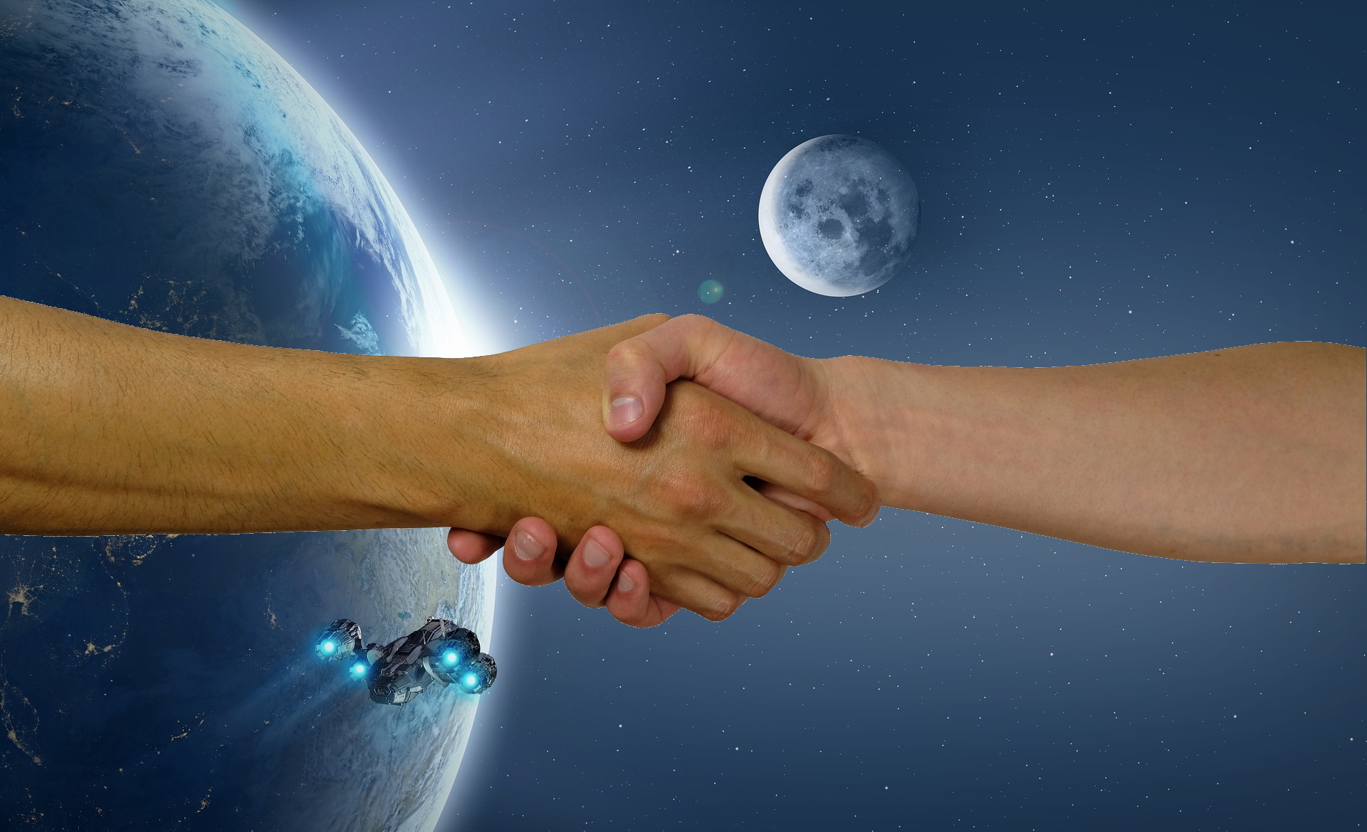 Statt Krieg zu führen, sollte die Internationale Gemeinschaft ein Bündnis eingehen, friedlich zusammen leben und sich das Weltall für Ressourcen erschließen..