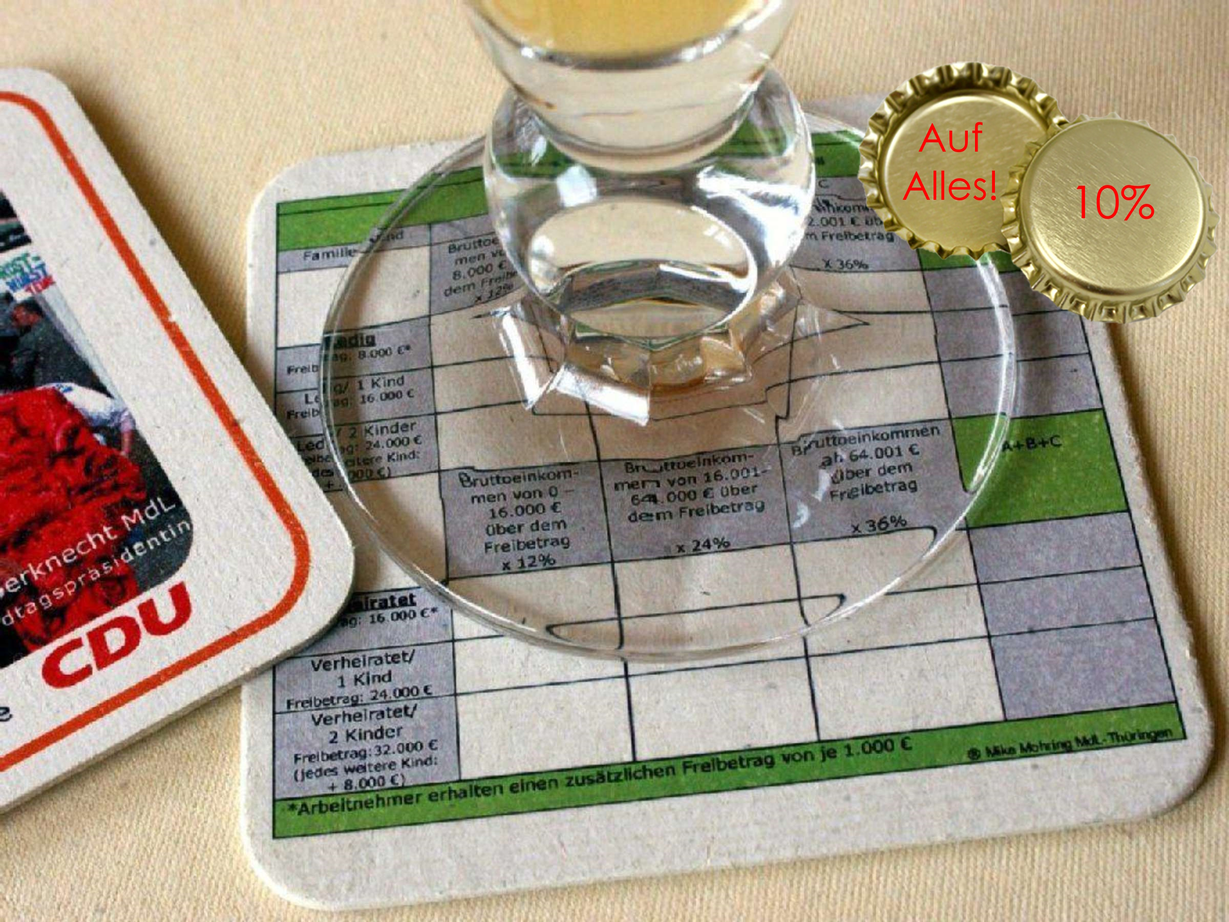 ..von der CDU versprochen; Wird zur Kronkorken Steuertabelle: