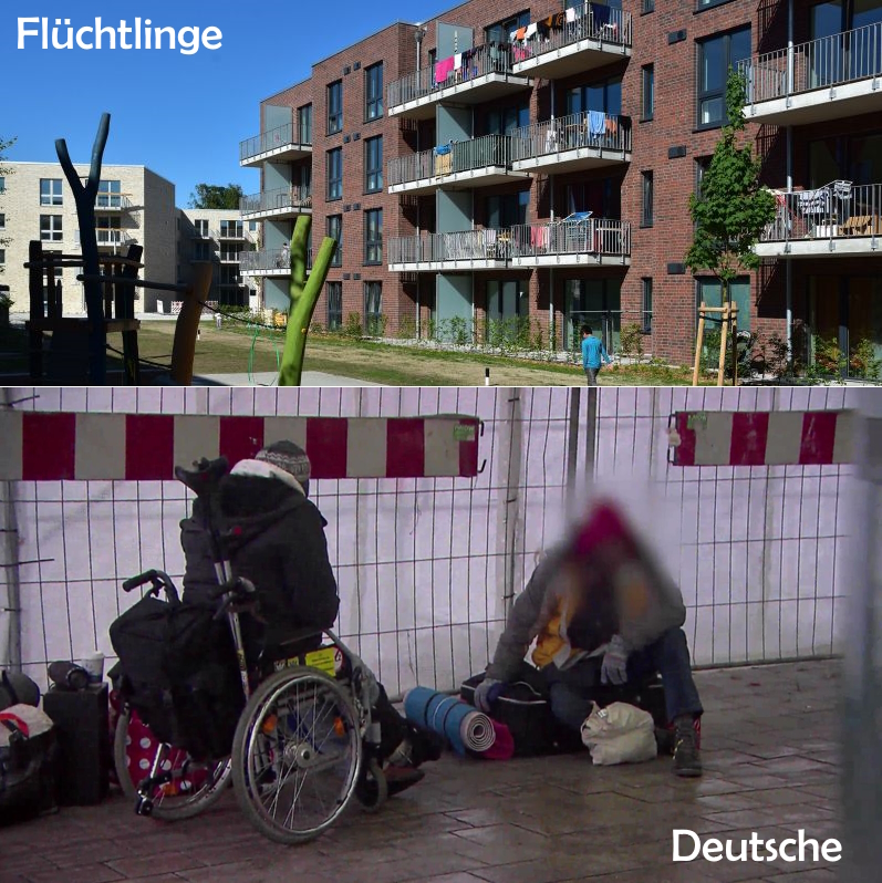 Wenn man deutschen Obdachlosen, erst Recht wenn sie (Schwer-) Behindert sind, wohnungstechnisch genauso helfen würde wie die Regierung den Flüchtlingen...